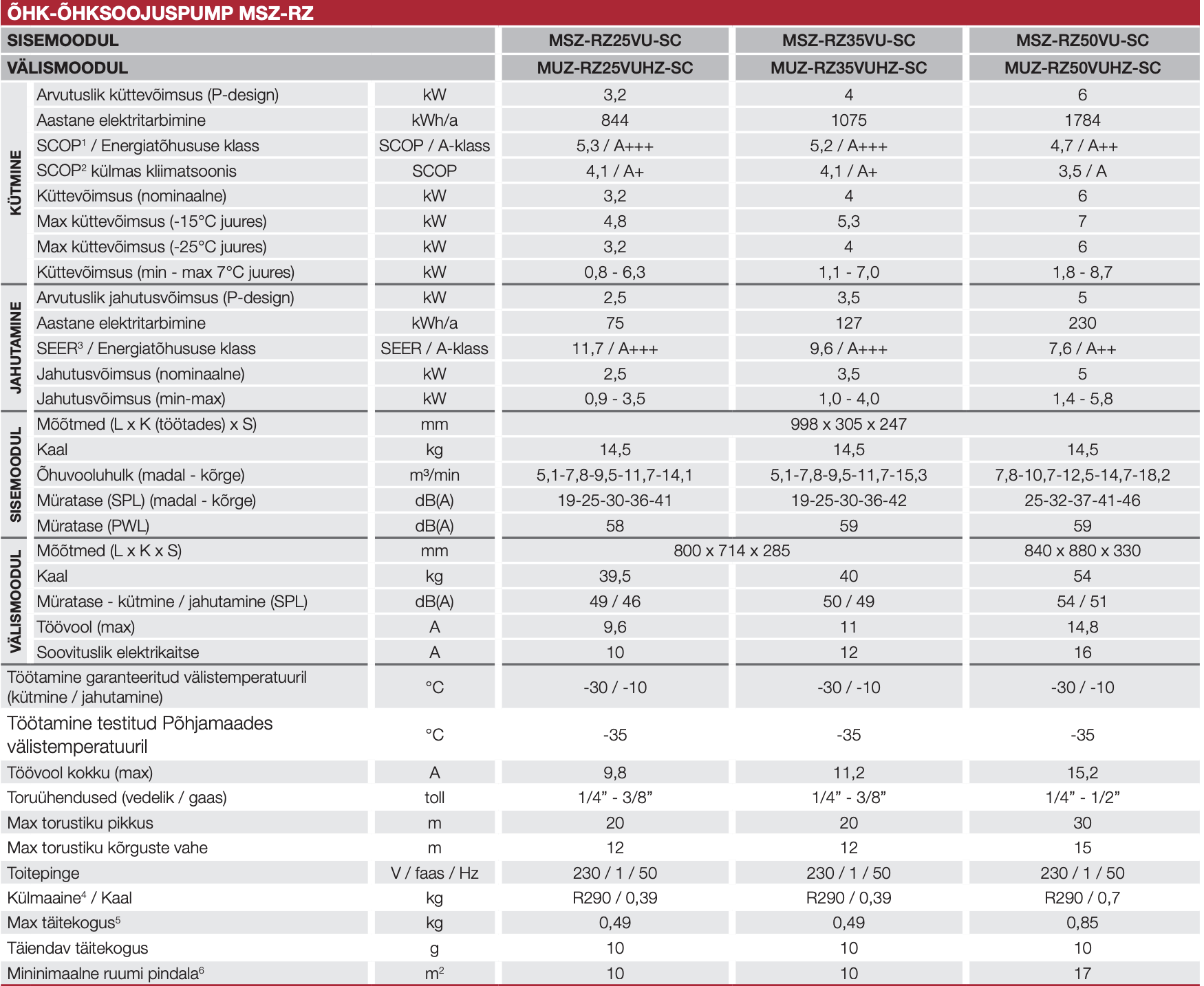 - TÕHUS KÜTTESEADE – Kõrge energiatõhususega (SCOP 5,3) MSZ-RZ pakub kuni 5,3 korda rohkem soojusenergiat kui nt tavaline elektriradiaator.